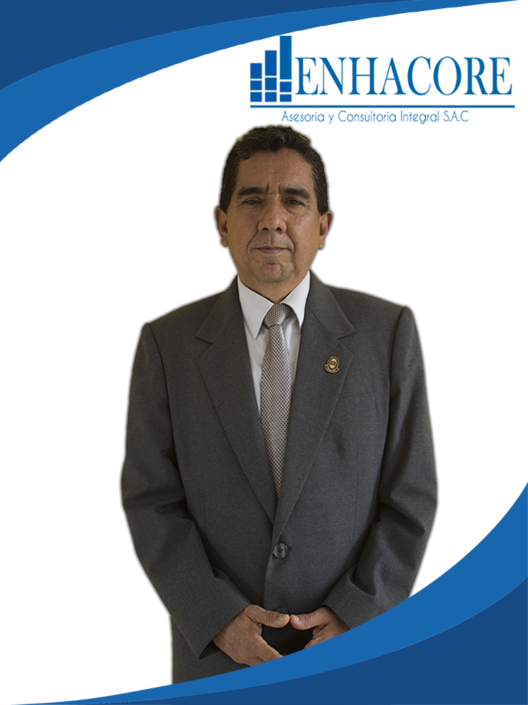 Contador Público Colegiado Certificado, Gerente General de la empresa ENHACORE, egresado de la Universidad San Martín de Porres, en Lima; con más de 25 años de experiencia en el área administrativa, contable, tributaria, laboral y financiera en empresas públicas y privadas, con Diplomado en Tributación y maestría en Gestión Pública, Perito Contable miembro del REPEJ.